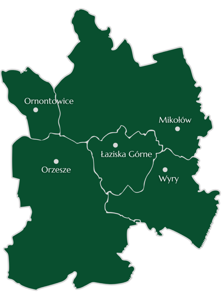 Komornik zgodnie z art. 8 ustawy o komornikach sądowych działa na obszarze właściwości miejscowej Sądu Rejonowego w Mikołowie, tj: